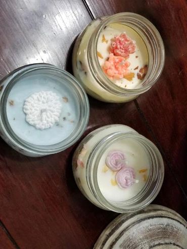 Aromatherapy home-made candles with Dried Flowers and Herbs
